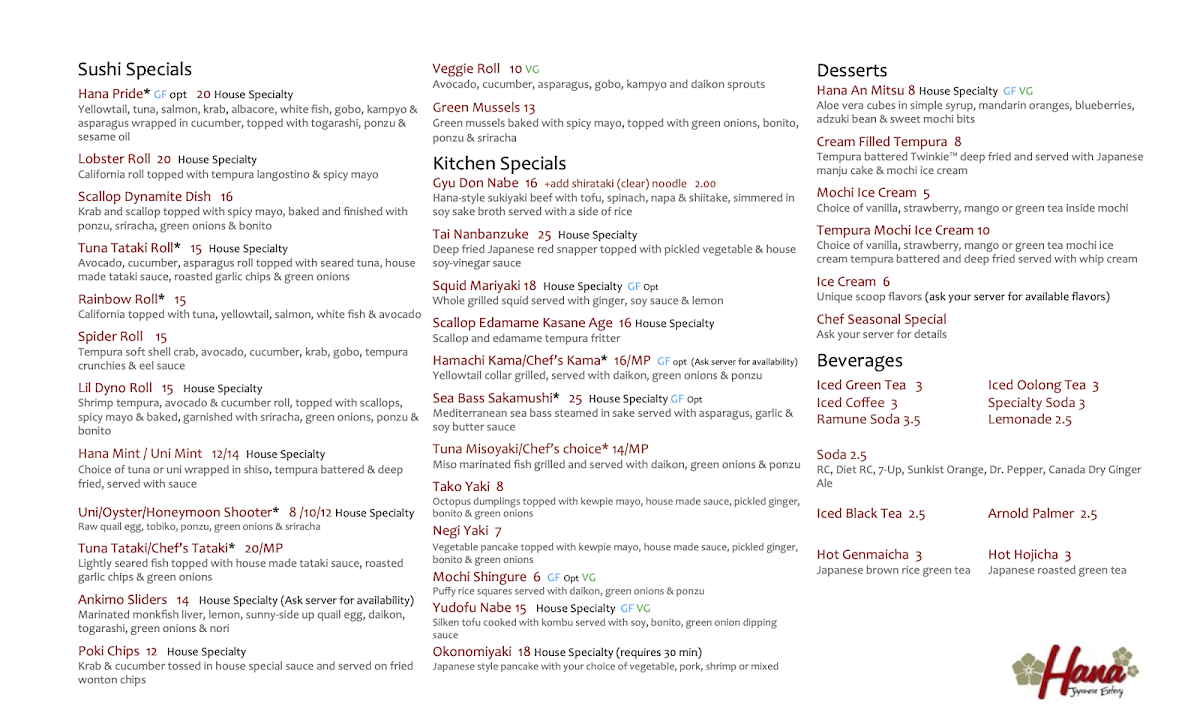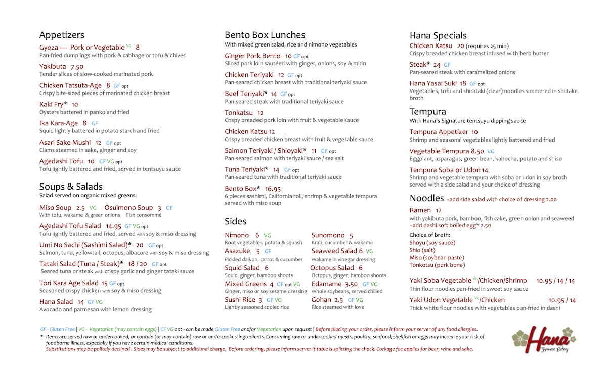 Step into a world of authentic Japanese flavors at the Hana Japanese Eatery Menu, where every dish is crafted with care and precision. Located in the heart of Phoenix, this cozy eatery invites you to explore an array of mouthwatering options that capture the essence of Japan’s culinary tradition. From freshly made sushi to comforting bowls of ramen, there’s something for every palate. Whether you’re in the mood for a light snack or a hearty meal, each item is thoughtfully prepared, using only the finest ingredients. With a focus on simplicity and balance, the menu offers a variety of choices that showcase the beauty and depth of Japanese cuisine, perfect for any occasion.